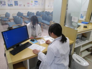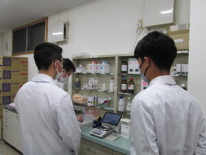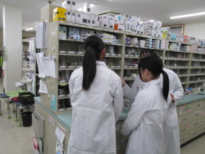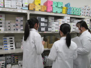 2名ずつ3グループに分かれて、薬局での業務内容を一通り体験してもらいました。